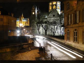 Keywords: night scene historically metz cathedral lighting road lights atmospheric atmosphere