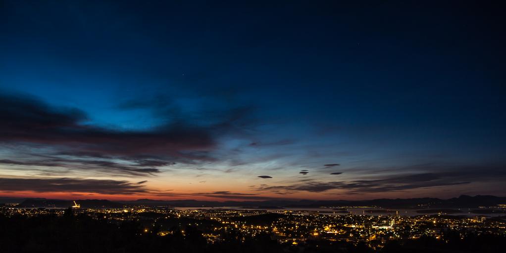 Keywords: night stavanger sea fjord outdoors light blue water the nature of the nice clouds landscape sky views blue norway stars the sea orange city water coast reflection