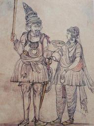 | Keywords: Nihang Singh and Nihang Singhani.jpg en The Nihangni appears to have her hair in top knot maybe a keski She wears a salwar and kameez and carries a chakar and mala around her neck and a Mala in her hand This 19th century sketch of a Sikh Nihang couple is likely to be drawn by Kehar Singh Musawar of Lahore and Amritsar 2007-04-30 12 05 51 http //chdmuseum nic in/ Unknown 19th Century artist possibly Keher Singh Custom license marker 2013 05 28 PD-old-100 Uploaded with UploadWizard Saint Soilders 19th century Sikh art Punjabi dress |