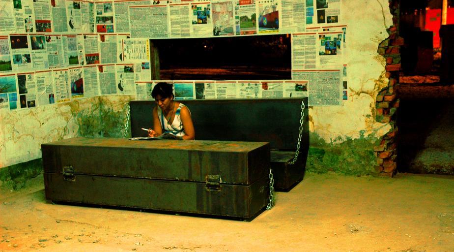 Keywords: Nikita Wu @ Future Pavillion.JPG en Nikita Wu at the Future Pavillion of the Taiwan Desing Expo 2005 proof-reading the free newspaper PePo as the editor own Movez Nikita Wu