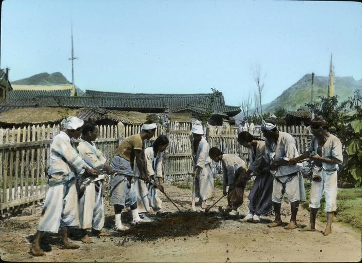 | Keywords: Nine-man shovel, Korea, (s.d.) (Taylor box21num15).jpg en <br> Nine-man shovel Korea s d Nearly all Korean labor methods are unique Actual experiment has demonstrated that nine or six or even three men using this kind of hand-digging shovel can do more work more easily than the same number of men vigorously using individual shovels Date created 1908/1922 Publisher of the Digital Version University of Southern California Libraries Repository Name Methodist Church U S Legacy Record ID kda-m82 Photographer Methodist Episcopal Church Format photograph Archival file kda_Volume42/Taylor_box21num15 jpg Rights Neither the General Conference nor any General Agency of The United Methodist Church successor to the Methodist Episcopal Church claims any interest in the photos or images Filename Taylor_box21num15 Coverage date 1908/1922 Contributing entity University of Southern California Repository Address Nashville Tennessee Part of collection Korean Digital Archive Donor Taylor Ewing Bevard Type images Part of subcollection The Reverend Corwin Nellie Taylor Collection Geographic Subject Country Korea Compiler Taylor Corwin; Blood-Taylor Nellie 1908/1922 Methodist Episcopal Church http //digitallibrary usc edu/cdm/ref/collection/p15799coll48/id/713 PD-Japan-oldphoto Korean archive in the USC digital library Images from USC Digital Library uploaded by Fæ |
