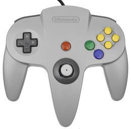 | Keywords: Nintendo-64-Controller-Gray-Flat.jpg The Nintendo 64 controller shown from above The controller features an odd and unique design that is meant to be held in multiple ways Most commonly however the controller was held with the left hand on the middle prong and the right hand over the buttons Most games made use of the analog joystick for moving about in 3D space which gave the d-pad little to do Gamepads would later evolve to have both a d-pad and analog stick on the left removing the need for an awkward three-prong design own 2014-05-25 Evan-Amos User Evan-Amos/EABanner Taken with Nikon D7100 Electronic devices on white background Nintendo 64 Controller |