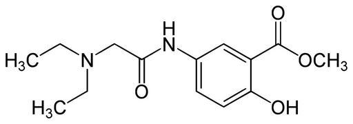 | Keywords: Nirvanine.svg en Nirvanine; methyl 5- 2-diethylaminoacetyl amino-2-hydroxybenzoate de Nirvanin; 5- Diethylamino acetamido -salicylsäuremethylester own Yikrazuul 2008-08-16 Anesthetics Tertiary amines Salicylate esters Un-N-substituted anilides Methyl esters |