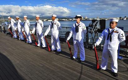 | Keywords: Nisei soldiers honored during Pearl Harbor Veterans Day ceremony 131111-N-WF272-003.jpg en Sailors from the Navy Rifle Detail stand at parade rest aboard the Battleship Missouri Memorial during a Veterans Day ceremony dedicated to America's Nisei The second-generation U S -born Japanese-American soldiers served during World War II in the 100th Infantry Battalion 442nd Regimental Combat Team Military Intelligence Service and 1399th Engineer Construction Battalion The ceremony signaled the opening of a special exhibit aboard the Battleship Missouri Memorial honoring the service and bravery of America's Nisei soldiers U S Navy photo by Mass Communication Specialist 3rd Class Diana Quinlan/Released 2013-11-11 Petty Officer 3rd Class Diana Quinlan https //www dvidshub net/image/1053991 131111-N-WF272-003 2013-11-16 20 16 PEARL HARBOR HI US PD-USGov-Military-Navy Battleship Missouri Memorial Veterans Day Images from DoD uploaded by Fæ |