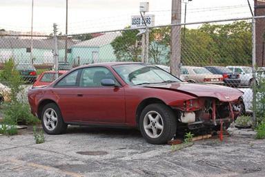 Keywords: Nissan240SXDamaged.jpg en Nissan 240SX found in a salvage yard own Ryanandlenny Nissan 240SX S14 Taken with Canon EOS 450D Red coupes Crashed vehicles