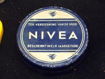 Keywords: Nivea, ter versterking van de huid.JPG Nivea ter versterking van de huid own 2012-12-09 16 46 04 Alf van Beem CC-zero Trademarked Ointment tins Nostalgia by Alf van Beem