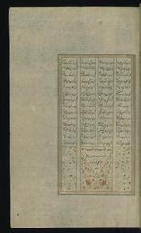 | Keywords: Nizami Ganjavi - Colophon - Walters W610371A - Full Page.jpg This folio from Walters manuscript W 610 contains 1 of 6 short colophons in Arabic with neither date nor scribe's name century 16 AD Safavid ink pigments laid paper cm 32 5 20 accession number W 610 371A 83616 Henry Walters Baltimore date and mode of acquisition unknown Walters Art Museum Henry Walters Acquired by Henry Walters Transliteration place of origin Iran Walters Art Museum license 2D Khamsa of Nizami Safavid Walters MS 610 Media contributed by the Walters Art Museum needs category review |