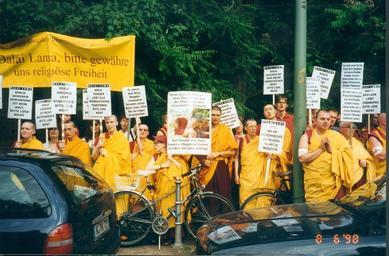 Keywords: NKT-demonstration Berlin 98-Tempodrom.JPG Das ist ein Foto von einer der öffentlichen Demonstrationen der Neuen Kadampa Tradition Die Texte auf den Bannern wurden nach Aussage der damaligen NKT-Repräsentantin in Deutschland von Geshe Kelsang Gyatso dem Gründer der NKT selbst entworfen Die NKT demonstrierte gegen den Dalai Lama weil er mit seiner Warnung und seiner Aussage gegen Shugden ein sogenannter Dharma-Schützer dessen Wesen umstritten ist den Reinen Dharma zerstören würde und die Religionsfreiheit behindern würde Die Banner enthalten Texte wie Du weißt daß Dorje Shugden niemanden Schaden zufügt Dalai Lama bitte höre auf Lügen zu verbreiten oder Dorje Shugden liebt alle buddhistischen Traditionen bitte lüge nicht This photo was taken during one of the many New Kadampa Tradition's demonstrations organized worldwide to protest against HH the Dalai Lama's statements on Dorje Shugden reliance According to the former representative of NKT in Germany Gen Kelsang Dechen the slogans on the banner were created by Geshe Kelsang Gyatso himself The slogans are in German and the content is You know that Dorje Shugden harms no being please Dalai Lama stop spreading lies Dorje Shugden loves all Buddhist traditions please don't lie self-photographed 1998-06-08 A Marcus A Marcus Original upload log de wikipedia NKT-demonstration+Berlin+98-Tempodrom JPG wikitable - 2006-06-06 12 26 1772×1168× 1592837 bytes Waschi <nowiki> Bildbeschreibung Das ist ein Foto von einer der öffentlichen Demonstrationen der Neuen Kadampa Tradition Die Texte auf den Bannern wurden nach Aussage der damaligen NKT-Repräsentantin in Deutschland von Geshe - 2006-05-31 22 01 640×422× 206842 bytes de User Waschi Waschi <nowiki>Das ist ein Foto von einer der öffentlichen Demonstrationen der Neuen Kadampa Tradition Die Texte auf den Bannern wurden nach Aussage der damaligen NKT-Repräsentantin in Deutschland von Geshe Kelsang Gyatso dem Gründer der NKT selbst entworf</nowiki> page en wikipedia Demonstration_for_religious_freedom JPG 2006-05-31 22 25 25 Kt66 640×422 206842 bytes <nowiki>This foto is taken during one of the many New Kadmapa Traditions demonstration organized worldwide to protest against HH the Dalai Lamas open statements on Dorje Shugden reliance According to the former representative of NKT in Germany G</nowiki> 2006-06-06 12 24 57 Kt66 1772×1168 1592837 bytes <nowiki>This foto is taken during one of the many New Kadampa Traditions demonstration organized worldwide to protest against HH the Dalai Lamas open statements on Dorje Shugden reliance According to the former representative of NKT in Germany G</nowiki> 2006-06-06 12 32 02 Kt66 1772×1168 1592837 bytes <nowiki>This foto is taken during one of the many New Kadampa Traditions demonstration organized worldwide to protest against HH the Dalai Lamas open statements on Dorje Shugden reliance According to the former representative of NKT in Germany G</nowiki> 2006-06-06 17 58 48 Kt66 1772×1168 1592837 bytes <nowiki>This foto is taken during one of the many New Kadampa Traditions demonstration organized worldwide to protest against HH the Dalai Lamas open statements on Dorje Shugden reliance According to the former representative of NKT in Germany G</nowiki> New Kadampa Tradition |