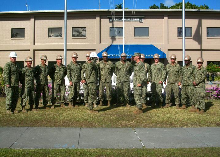 Keywords: NMCB 3 Pacific region deployment 130811-N-ZZ999-011.jpg en Navy Ensign Mallory Smith Naval Mobile Construction Battalion 3's Diego Garcia detachment's officer in charge renders a salute to departing NMCB 5 officer in charge Navy Ensign Raymond Bendt during a battalion turnover ceremony The Seabees from NMCB 3 located in Diego Garcia are tasked with building a 3 000 square-foot contractor living unit which will serve as a residence for assigned civilian contractors Aside from providing such personnel with a bedroom restroom facilities and laundry room the project also provides a bridge for forming better relations amongst the contractor community as well as showing reinforced commitment to the allied British government One of the first battalions commissioned during World War II NMCB 3's legacy stands strong in its ability to build and fight anywhere in the world as either a full battalion or as a group of autonomous detachments simultaneously completing critical engineering and construction missions For this deployment NMCB 3 has split into nine detachments to perform critical construction projects in remote island areas such as Timor-Leste Tonga Cambodia and the Philippines The teams will also conduct operations in Atsugi Yokosuka and Okinawa Japan Chinhae South Korea and China Lake Calif The naval construction force is a vital component of the U S maritime strategy They provide deployable battalions capable of providing disaster preparation and recovery support humanitarian assistance and combat operations support NMCB 3 provides combatant commanders and Navy component commanders with combat-ready warfighters capable of general engineering construction and limited combat engineering across the full range of military operations 2013-08-11 U S Navy photo by Equipment Operator 2nd Class Daanen M Grasso/RELEASED https //www dvidshub net/image/997983 130811-N-ZZ999-011 2013-08-19 00 30 DIEGO GARCIA IO PD-USGov-Military-Navy Naval Support Facility Diego Garcia Naval Mobile Construction Battalion 3 Images from DoD uploaded by Fæ |