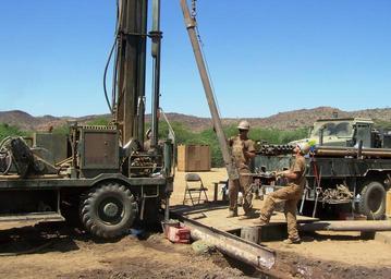 | Keywords: NMCB 74 Seabees Drill Water Well in Horn of Africa DVIDS372652.jpg en Petty Officers 3rd Class Mark Britt and Jeffrey Goodrum Seabees assigned to Naval Mobile Construction Battalion 74 Detail Horn of Africa's Water Well Team guide a 15-foot 1100 lb drill collar into place while drilling a water well in the village of Jedane Ethiopia NMCB 74 Det HOA is deployed to support Combined Joint Task Force-Horn of Africa in building partner nation capacity and promoting regional stability through construction engineering support in accordance with the U S Maritime Strategy 2011-02-07 right https //www dvidshub net/image/372652 110207-N-+++++-007 2011-03-02 11 24 JEDANE ET PD-USGov-Military-Navy Combined Joint Task Force - Horn of Africa Images from DoD uploaded by Fæ |