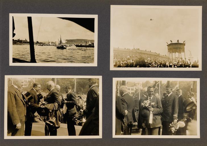 | Keywords: roald amundsen lincoln ellsworth ny-ålesund nyålesund svalbard leif dietrichson omdal hjalmar riiser-larsen riiserlarsen dornier-wal dornierwal amundsen-ellsworth amundsenellsworth polar flight roald amundsen roaldamundsen lincoln ellsworth lincolnellsworth photo border Albumside med fire fotografier. Øverst fra venstre: Utsnitt fra Dornier-Wal flyet N25 i sjøen ved Huk hvorfra ekspedisjonsdeltagerne ble rodd inn til Honnørbryggen, N25 svinger i luften over havnen mens den hilses av folkemengden, Amundsen på mottagelsesseremonien med Ellswroth bak, smilende Ellsworth med Dietrichson, Riiser-Larsen og Omdal i bakgrunnen ved mottagelsesseremoien i Oslo havn. Fra album om Amundsen-Ellsworth polflyvning 1925. Albumside med fire fotografier. Øverst fra venstre: Utsnitt fra Dornier-Wal flyet N25 i sjøen ved Huk hvorfra ekspedisjonsdeltagerne ble rodd inn til Honnørbryggen, N25 svinger i luften over havnen mens den hilses av folkemengden, Amundsen på mottagelsesseremonien med Ellswroth bak, smilende Ellsworth med Dietrichson, Riiser-Larsen og Omdal i bakgrunnen ved mottagelsesseremoien i Oslo havn. Fra album om Amundsen-Ellsworth polflyvning 1925. |