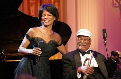| Keywords: Nnenna Freelon, Clark Terry.jpg Jazz musicians Nnenna Freelon and Clark Terry perform at the White House on September 14 2006 during the Thelonious Monk Institute of Jazz dinner http //www whitehouse gov/news/releases/2006/09/images/20060914-5_p091406sc-0626-1-515h html 2006-09-14 White House Photographer Shealah Craighead PD-USGov Clark Terry Nnenna Freelon Music in 2006 Music performances in the White House Photographs by Shealah Craighead 20060914 | ||||