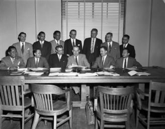 | Keywords: nc lieutenant governors nclieutenantgovernors blackandwhite monochrome indoor black and white L. Y. Ballentine and foreign visitors, 11 March 1954. From the Raleigh News & Observer Negative Collection, State Archives of North Carolina. COPYRIGHT RALEIGH NEWS & OBSERVER NEWSPAPER. ILLEGAL TO PUBLISH OR DISTRIBUTE WITHOUT EXPRESSED PERMISSION FROM THE N&O. L. Y. Ballentine and foreign visitors, 11 March 1954. From the Raleigh News & Observer Negative Collection, State Archives of North Carolina. COPYRIGHT RALEIGH NEWS & OBSERVER NEWSPAPER. ILLEGAL TO PUBLISH OR DISTRIBUTE WITHOUT EXPRESSED PERMISSION FROM THE N&O. |
