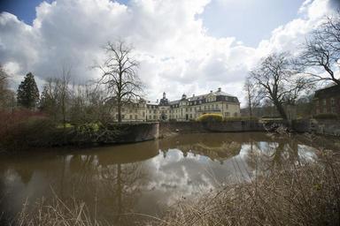 Keywords: noble family count castle monastery varlar gentlemanly clouds water lake reflection nature sky blue mirroring westfalen middle ages knights castle wall wide