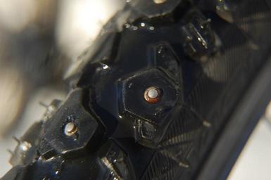 Keywords: Nokian Hakkapeliitta W240 close up.jpg en Close up of a Nokian Hakkapeliitta W240 studded bicycle tyre ridden 700 km own Prillen Studded bicycle tires