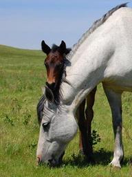 | Keywords: Nokota mare and foal.JPG en A Nokota mare and her few day old colt at the Kuntz Ranch near Linton North Dakota Photo taken by Seth Zeigler at the Nokota Horse Conservancy Linton North Dakota Seth zeigler 2010-05-27 Cc-zero Grey horses with foals Nokota horse |