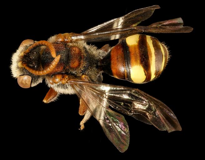 MAKE A MEME View Large Image This species, at least in the male, has a distinctive antennae. You can see it in at least the picture taken of the bee's side that the underside of the antenna is partially eroded away leaving a hollow on each segment. In general, the ...