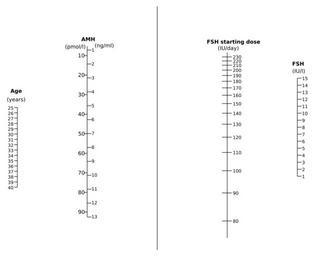 | View Original: | Nomogram for FSH dosage by AMH.svg (774x630) | |||