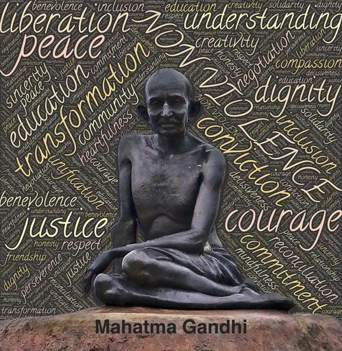 Keywords: non-violence peace transformation leadership inspiration symbol gandhi mahatma concepts and ideas dignity liberation freedom education justice courage diversity discrimination equality emancipation human movements people rights