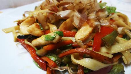Keywords: noodles food white background kitchen tasty pork meat rice noodles dish greens cooking japan