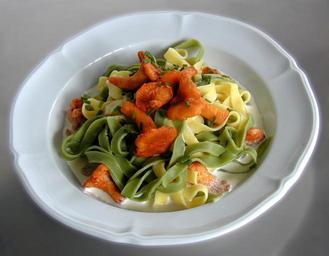 Keywords: noodles noodle nest chanterelles cream cream sauce main course starter plate chives pasta plate pasta mushrooms sponges mushroom
