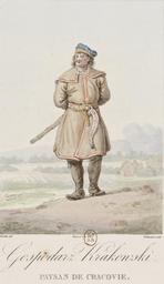 | Keywords: Norblin - Peasant from Krakow.jpeg Artwork Creator Jean-Pierre Norblin de La Gourdaine Farmer from Krakow Paysan de Cracovie Gospodarz krakowski К естьянин владеющий землёй зажиточный к естьянин фе ме кулак; букв господин господа ь из К акова 1817 Institution Bibliothèque nationale de France object history credit line Zbior wzorowy rozmaitych polskich ubiorow pędzlem znanego malarza Norblin wydanych a przez slawnego Debucourt na miedzi wyrzniętych accession number ark /12148/btv1b8449724s PD-old-100 Polish costume collection drawn from nature by Norblin and engraved by Debucourt Folk costumes of Lesser Poland National costume of Poland in art Four-pointed caps |