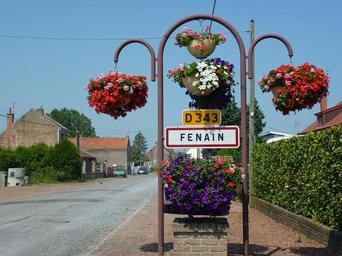 Keywords: nord france flowers sign sky buildings town cities city urban road sidewalk summer spring