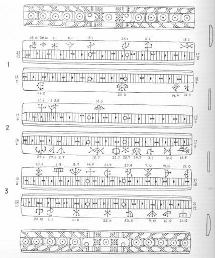 | Keywords: Nordiska museet. Inv. Nr. 132,556.png de Material Rentierhorn und “knochen Nordsamische Ornamentik Es handelt sich offenbar um eine fehlerhafte Kopie des Kalenders ˛ File Finlands Nationalmuseum Helsingfors InvNr 5407 png aus dem Jahr 1822 Der Kalender beginnt am 22 Dezember und ist von oben nach unten und von links nach rechts zu lesen Der Kalender hat 370 Tagesstriche also fünf zu viel Sie befinden sich zwischen dem 4 und 7 Februar dem 17 und 21 Oktober dem 23 und 25 November und hinter dem 21 Dezember Am 6 November ist eine falschen Wochenmitte-Markierung gesetzt und am 29 April fehlt die Wochenendmarkierung Der Kallender hat seine Achttageswoche zwischen dem 30 Dezember und dem 7 Januar Der eingeschobene Tag liegt zwischen dem 1 und dem 3 Januar Ingalill och John Granlund Lapska ben- och trƤkalendar Stockholm1973 S 107 “109 century 19 author PD-ineligible PD-old-100 Sami runic calendars in Nordiska museet Calendars of Sweden Fingalo ImageNote 1 1547 406 32 32 2034 2435 2 Ein Tagesstrich zu viel ImageNoteEnd 1 ImageNote 2 1677 1631 32 32 2034 2435 2 Ein Tagesstrich zu viel ImageNoteEnd 2 ImageNote 3 1047 1997 32 32 2034 2435 2 Ein Tagesstrich zu viel ImageNoteEnd 3 ImageNote 4 1754 1976 32 32 2034 2435 2 zwei Tagesstriche zu viel ImageNoteEnd 4 ImageNote 5 605 1976 32 32 2034 2435 2 Falsche Wochenmittemarkierung ImageNoteEnd 5 ImageNote 6 544 337 32 32 2034 2435 2 Eingeschobener Tag für die 8-Tagewoche ImageNoteEnd 6 |