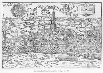 | Keywords: Nördlingen Stadtansicht 1549.png de Bei dem Holzschnitt aus erhöhten Kavaliersperspektive handelt es sich um das älteste bekannte Bilddokument auf dem die Stadt Nördlingen dargestellt ist Stadtarchiv Nördlingen Hans Rudolf Manuel Deutsch 1549 Historical views of Nördlingen Nördlinger Ries Panoramics in Nördlingen History of Nördlingen Coats of arms of Nördlingen PD-old-100 | ||||