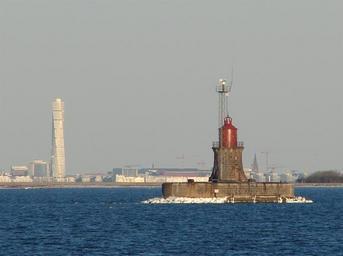 Keywords: Nordre Røse.JPG Nordre Røse udenfor Kastrup med Malmøs Turning Torso i baggrunden til venstre set fra Kastrup Amager own 2013 “03 Orf3us Nordre Røse fyr Turning Torso