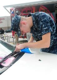| Keywords: Norfolk sailors provide VIN etching service 121003-N-YC505-022.jpg en Hospital Corpsman William Wooten temporarily assigned to the Naval Station Norfolk Police Precinct etches vehicle identification numbers onto a car in the Navy Exchange parking lot Oct 3 HEAT Help Eliminate Auto Theft provided a free VIN etching service to service members U S Navy photo by Mass Communication Specialist 3rd Class Molly Anne Greendeer 2012-10-03 Molly Treece https //www dvidshub net/image/677176 121003-N-YC505-022 2012-10-06 23 26 NORFOLK VA US PD-USGov-Military-Navy Naval Station Norfolk Images from DoD uploaded by Fæ |