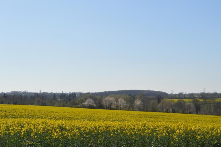 Keywords: normandy field green fields agricultural land agriculture landscape yellow nature france blue rural spring sky