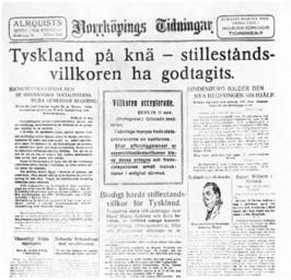| Keywords: Norrköpings Tidningar in 1918.jpg Daily newspaper Norrköpings Tidningar in 1918 Viggo Loos En avisa genom två sekler Norrköpings Tidningar 1758-1958 published by Norrköpings Tidningar 1958 ISBN 9969020714 page 321 1918-11 None of these news items have a signature Public domain PD-Sweden-photo PD-Old 1918 in Norrköping Norrköpings Tidningar 1918 newspapers November 1918 in Sweden Newspaper logos of Sweden | ||||