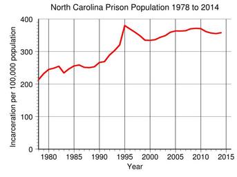 | Keywords: North Carolina Prison Population.svg en North Carolina prison incarceration rate per 100 000 population from 1978 to 2014 Data from http //www bjs gov/index cfm ty nps BJS 2016-05-11 own Delphi234 other versions current annually Generated with Wikimedia SVG Chart SVG Chart/box cc-zero Prisons in North Carolina Imprisonment and detention rates in the United States |