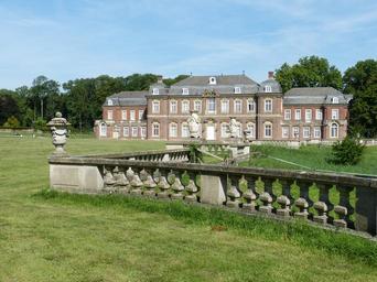 Keywords: north churches münsterland castle palace historically facade building baroque moated castle park garden rush meadow fence balustrade