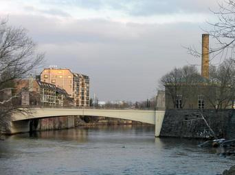 | Keywords: North Market St Bridge Wilmington.JPG Brandywine Creek in w Wilmington Delaware looking downstream East The buildings on the left are condos built on the foundations of mills from the 1800's The left bank is part of the Brandywine Village Historic District on the NRHP The building on the right is the Wilmington Brandywine Pumping Station which pumps water from the Brandywine to homes in Wilmington The bridge marks the approximate level of tidewater on the Brandywine Just upstream are rapids - the fall of the water used to power water mills in Brandywine Village and ocean-going ships loaded at the pool just east of the bridge The bridge's address would be about 1800 Market Street Wilmington Delaware own Smallbones 2010-01-19 January 2010 in Delaware Brandywine Creek Christina River Bridges in Delaware Concrete deck arch bridges in the United States Bridges in the United States photographed in 2010 U S Route 13 in Delaware Photographs taken on 2010-01-19 Brandywine Village Historic District Brandywine Pumping Station |