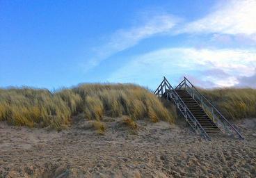 Keywords: north sea sea beach emergence stairs wood dunes