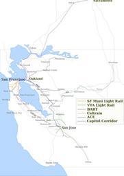 | Keywords: Northern California 2.svg SVG file showing several public transit rail lines highways and towns in Nothern California Currently including BART Caltrain VTA light rail SF Muni light rail and Capitol Corridor Used for picture here Image Bay Area Transit png 2006-10-27 own assumed JVittes~commonswiki Public transport maps of San Francisco |