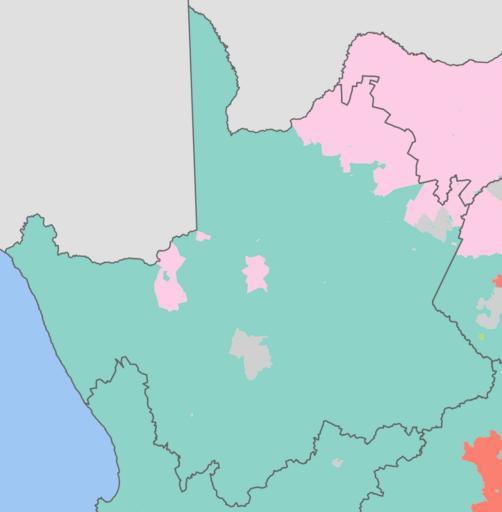 | Keywords: Northern Cape 2001 dominant language map.svg 8dd3c7 Afrikaans ffffb3 English fb8072 isiXhosa fccde5 Setswana d0d0d0 No language dominant Statistics South Africa's Census 2001 is the source of the basic population data The map results from my own processing of the data Htonl 2010-02-10 Htonl The following license applies to the population data on which the map is based http //www statssa gov za/copyrightdisclaimer asp the user acknowledges Stats SA as the source of the basic data wherever they process apply utilise publish or distribute the data and also that they specify that the relevant application and analysis where applicable result from their own processing of the data The following tag applies to the map itself Linguistic maps of South Africa Maps of the Northern Cape Maps by Htonl |