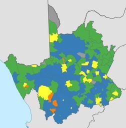 | Keywords: Northern Cape provincial election 2009 winner by VD.svg 2009 election of the Northern Cape Provincial Legislature legend 4daf4a African National Congress 377eb8 Democratic Alliance ffff33 Congress of the People ff7f00 Independent Democrats a65628 Freedom Front Plus 999999 Tie between two or more parties own based on IEC results reports Htonl 2013-12-13 2009 South African general election maps Maps of the Northern Cape Cc-zero | ||||