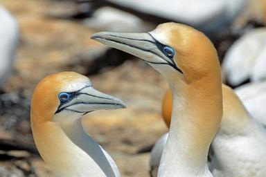 Keywords: northern gannet bird animals nature close birds new zealand pride golden white pair