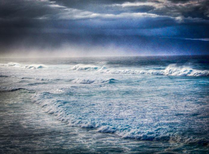Keywords: northern maui hawaii beach storm waves clouds water ocean dramatic weather wind danger landscape shore seascape splash foam grunge