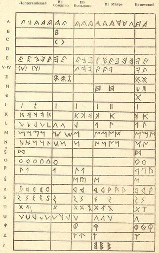 | Keywords: Northetr.jpg en North-Etruscan alphabets <br /> 1 Lugano inscriptions Lepontic alphabet “ 2 Sondrio inscriptions Camunic alphabet “ 3 Bolzano and Bozen-Sanzeno inscriptions Raetic alphabet Northern variant “ 4 Magrè Vicentino Verona and Padua inscriptions Raetic alphabet Southern variant “ 5 Venice and Este inscriptions Venetic alphabet own Ole Førsten 2009-01-01 Etruscan letters Alphabet charts | ||||