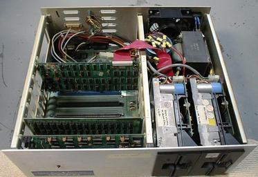 | Keywords: NorthStar Horizon inside view.jpg This is the inside view of a NorthStar Horizon vintage computer circa 1980 The plywood cover has been removed The left half contains the motherboard with slots for cards including memory processor and I/O cards The right front quarter contains the two 5 25 inch floppy disk drives mounted vertically The right rear quarter contains the power circuits with the large exposed transformer and capacitors clearly visible 2008-02-03 own assumed Dmeranda Historical computers Disassembled electronic devices |
