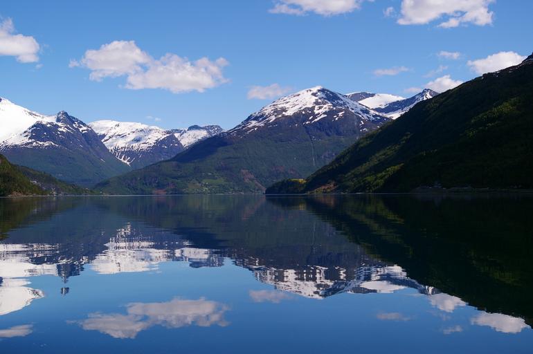 Keywords: norway fjordlandschaft hill nature landscape holiday north mountains spring summit clear air sky cold blue blue sky snow snow cover snowy white clouds fish recovery fjord water rest mirroring sunny