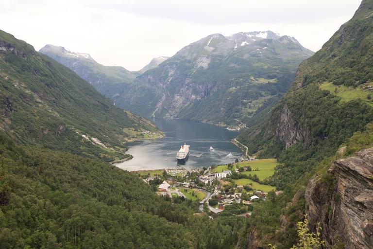 Keywords: norway geiranger fjord cruise shipping ship mountain river lake grass green