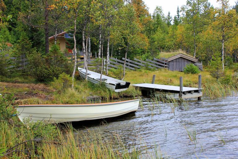 Keywords: norway lake water boats dock pier house home forest trees fall autumn nature outside country countryside