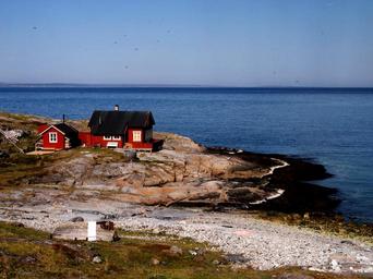 Keywords: norway sea coast home building red landscape