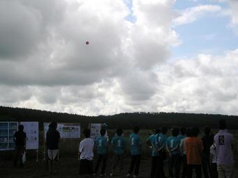 | Keywords: NoshiroSpaceEvent2007balloon.jpg Spectators watch as the release of a CanSat a mock-satellite the size of a beverage can approaches at the Noshiro Space Event '07 held in Noshiro Akita Japan 秋田 能代市で行われた能代宇宙イベント2007において 間もなく分離されるカンサット(空き缶衛星)と れを見守るイベント参加 own Photographed on 2007-08-18 Asahiko Noshiro Space Event CanSats |