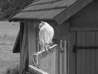 Keywords: nostalgia cat black white garden gate old curiosity balance nature freedom